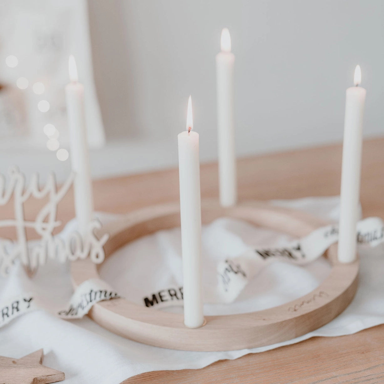 – Runder Adventskranz aus Eichenholz gefertigt