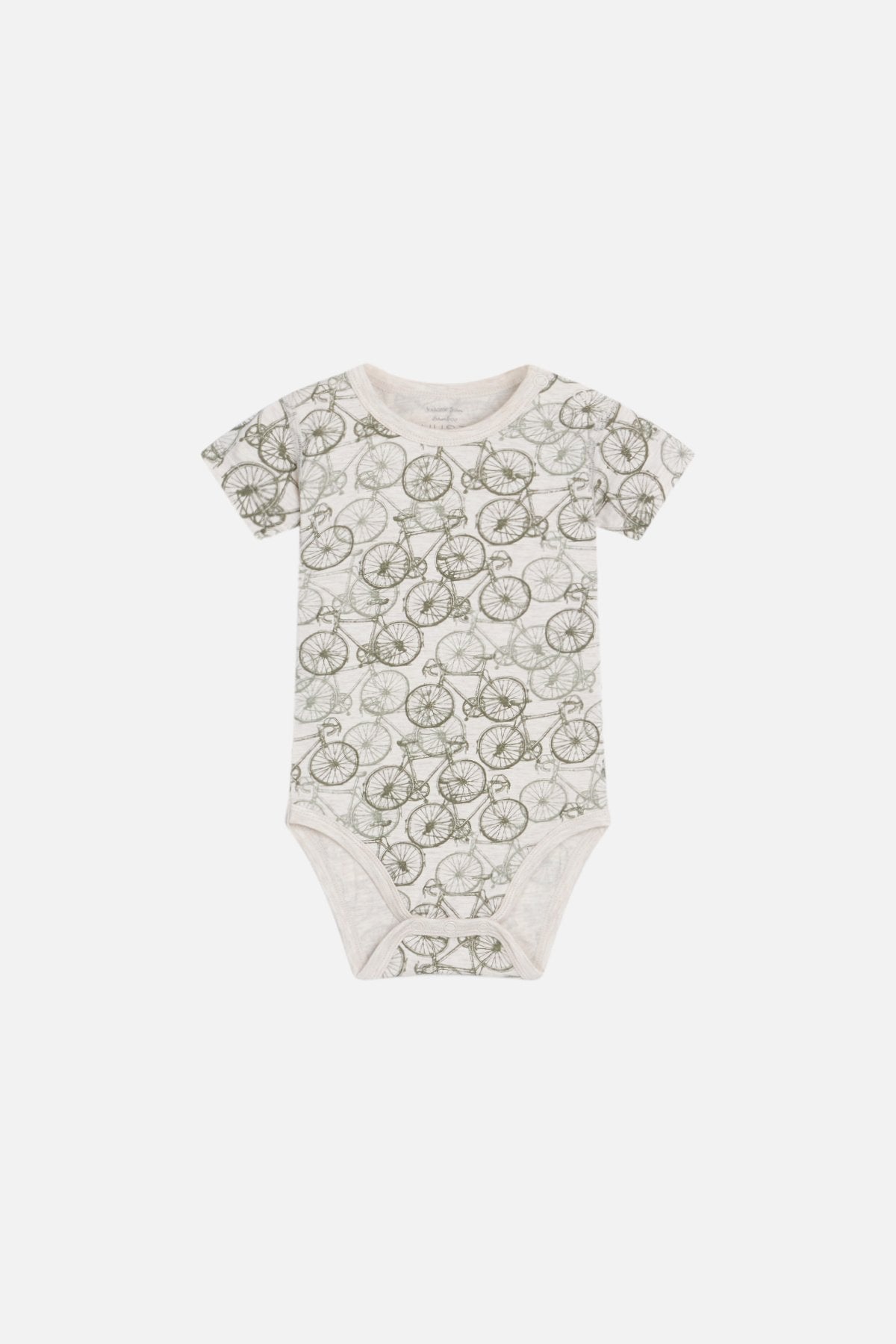 Leichter Kurzarmbody mit Fahrraddruck. Aus dem Material Bambusviskose. Perfekt für heisse Tage und empfindliche Haut. Eignet sich auch gut für Kinder im Tragetuch/Tragehilfe. Mit Druckknöpfen auf der linken Schulter und im Schritt.