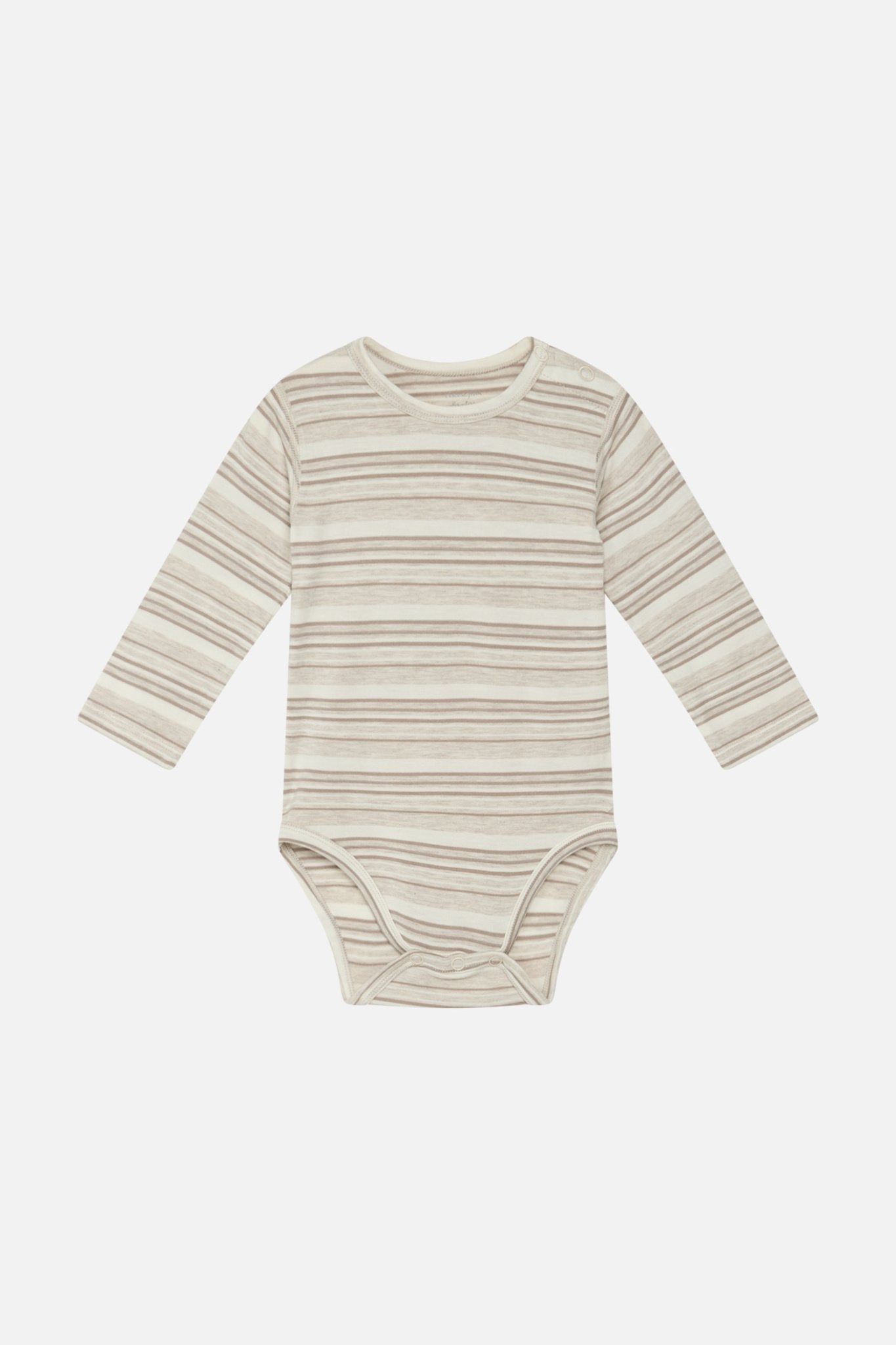 Leichter Langarmbody mit Streifen. Aus dem Material Bambusviskose. Perfekt für heisse Tage und empfindliche Haut. Eignet sich auch gut für Kinder im Tragetuch/Tragehilfe. Mit Druckknöpfen auf der linken Schulter und im Schritt. Lange Ärmel schützen vor der Sonne.