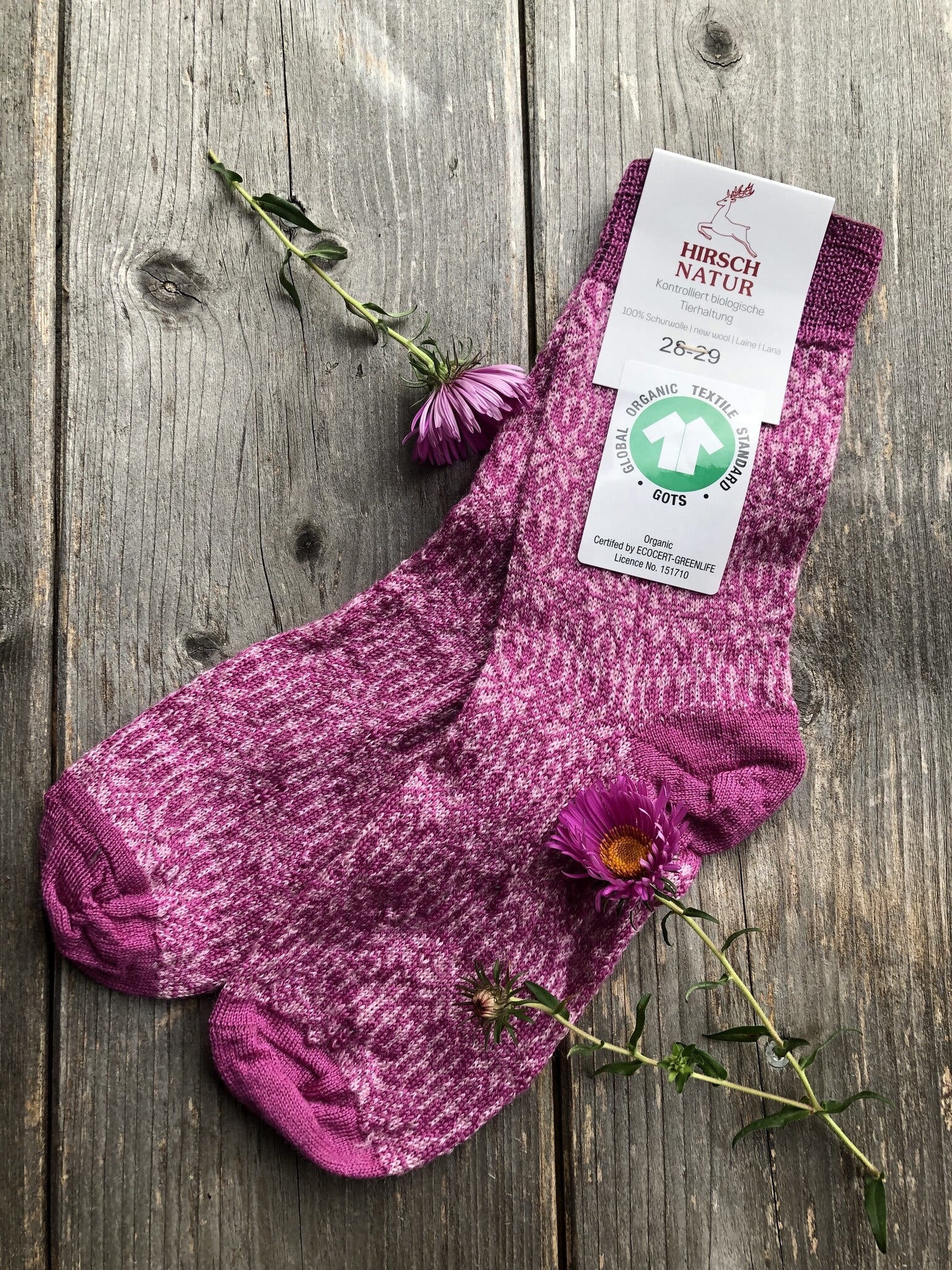 Wunderbare Wollsocke aus Bio Schurwolle. Mit Sternenmuster im nordischen Stil. Wärmt die Füsse, ohne am Fuss dick aufzutragen. In Deutschland hergestellt.
