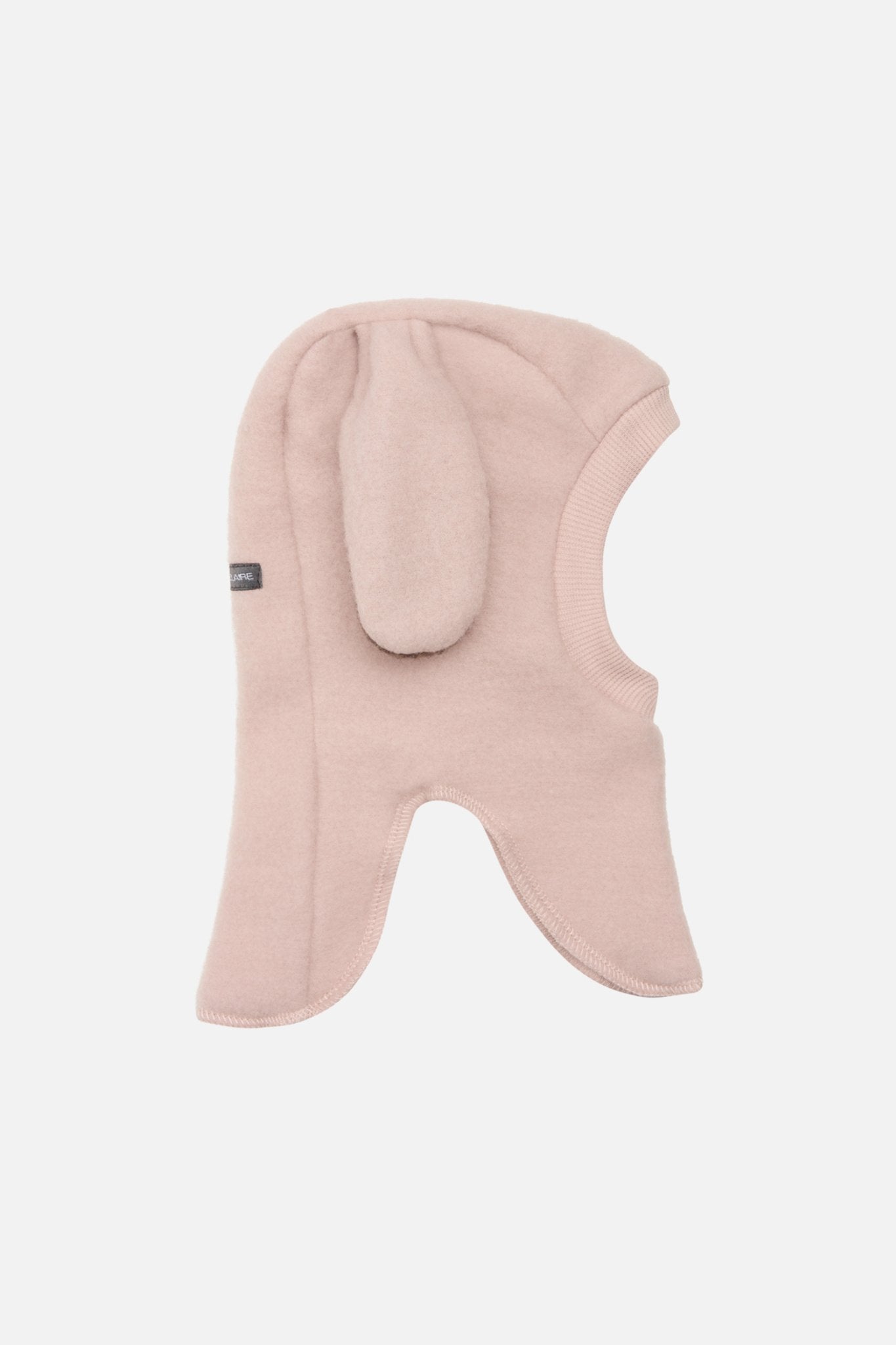 Warme und weiche Schlupfmütze von der dänischen Marke Hust and Claire. Sie ist aus mulesingfreier Merino-Wollfleece und umschliesst das Gesicht wunderbar. An der Gesichtsöffnung befindet sich ein breiter gerippter Rand. Als besonderes Detail hat sie seitlich lange Ohren. Der Hals und Nackenbereich wird dadurch auch gewärmt. Auf der Rückseite befindet sich eine kleine grau Logo-Applikation. Innen ist die Mütze mit feiner Baumwolle abgefüttert.