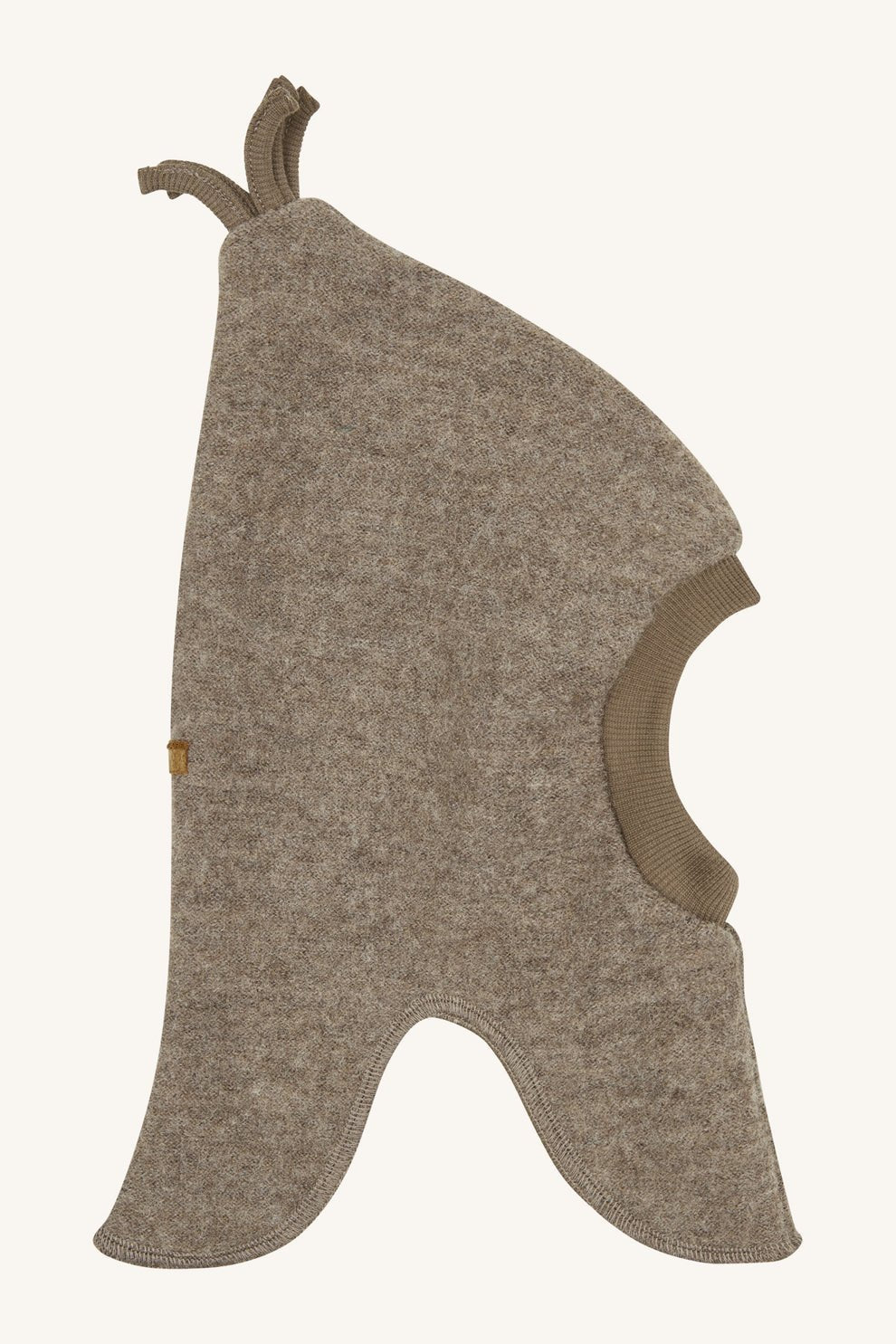 Warme Mütze aus gefleecter Merinowolle. Atmungsaktiv und regulierend. Innen zusätzlich mit Baumwolle abgefüttert, damit sie besonders dicht hält. Ein weiches Rippbündchen umschliesst das Gesicht. Wärmt auch den Hals- und Nackenbereich. Die Mütze verläuft zu einem Spitz. An der Spitze sind Kringel angebracht.