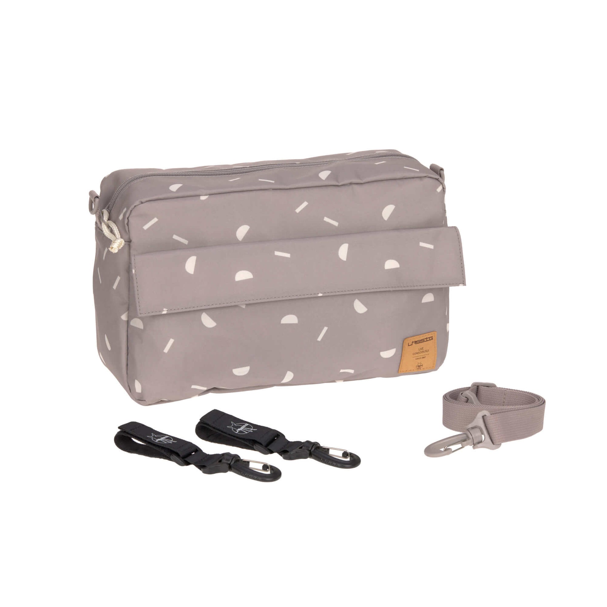 Modern, funktional und kompakt. Die praktische Buggy Organizer Bag aus der LÄSSIG Casual Kollektion ist Umhänge- und Kinderwagentasche zu gleich.
