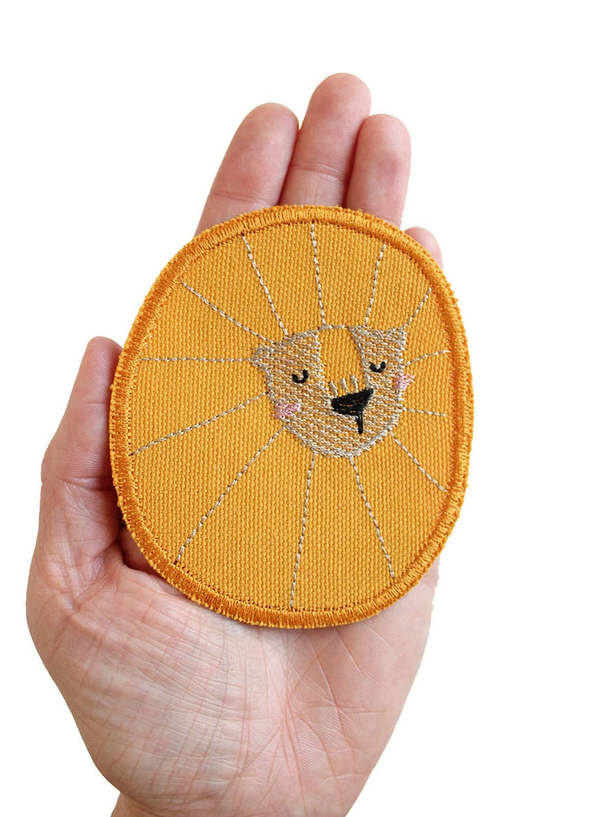 Robuster Löwen Knieflicken zum Aufbügeln. Unter 50 Sekunden ist jedes Loch geflickt mit dem Löwen aus Biobaumwollcanvas. Reparieren statt wegwerfen oder ein Kleidungsstück verschönern. Von Halfbird.