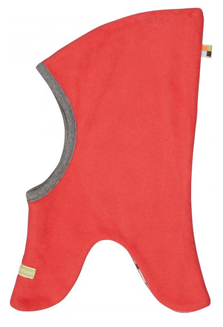 Weiche Schlupfmütze zum Wenden. Eine Seite ist aus bedrucktem Jersey, die andere Seite aus Fleece gefertigt. Vorne Logo-Etikett, hinten mit Fähnchen. Made in Portugal. Waschbar bei 30°C.