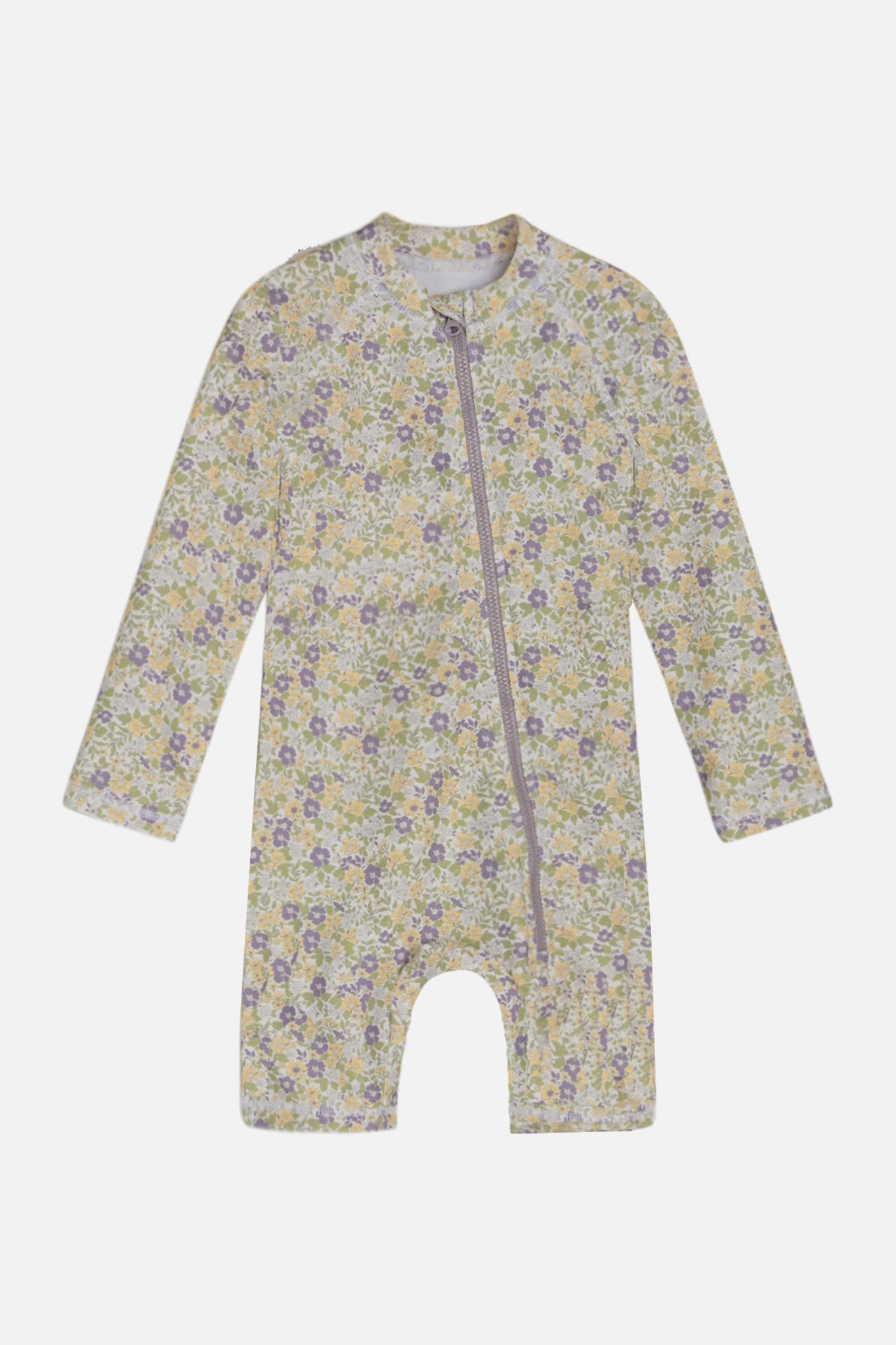 UV-Badeanzug mit schräg verlaufendem Reissverschluss. Schützt die Kinderhaut vor der Sonne mit einem UV50+ Schutz. Aus recyceltem Polyester. Auf Schadstoffe geprüft. Mit Blümchen bedruckt. Von der dänischen Marke Hust and Claire.