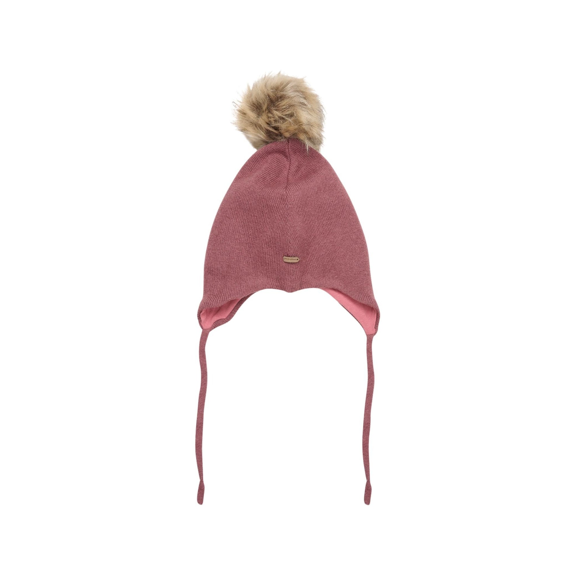 Mütze aus einem warmen Wolle/Baumwolle Strick mit Bindeband. Der Bommel kann mittels Druckknopf angebracht oder weggenommen werden. Innen ist die Mütze mit weichem Jersey abgefüttert und dadurch auch für Kinder die Wolle nicht mögen gut verträglich. Das Logo ist klein angenäht.