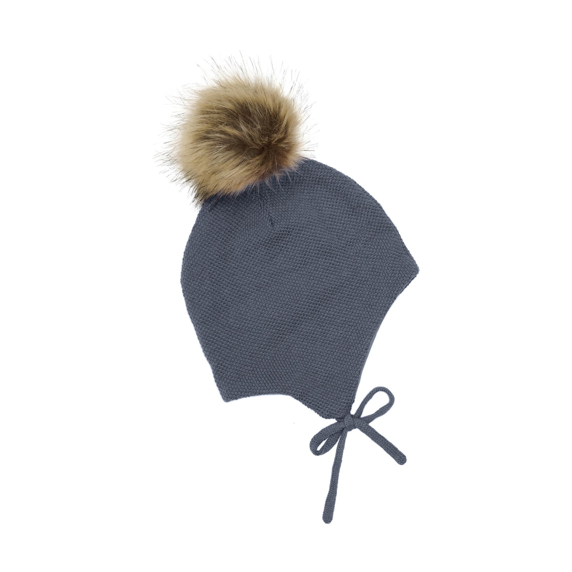 Mütze aus einem warmen Wolle/Baumwolle Strick mit Bindeband. Der Bommel kann mittels Druckknopf angebracht oder weggenommen werden. Innen ist die Mütze mit weichem Jersey abgefüttert und dadurch auch für Kinder die Wolle nicht mögen gut verträglich. Das Logo ist klein angenäht.