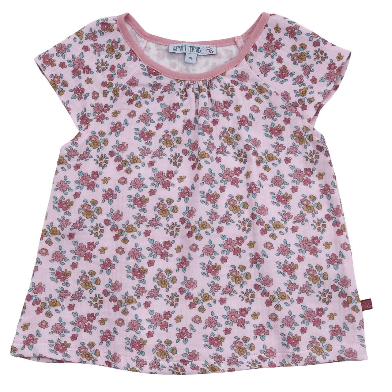 Luftiges Musselin Top in zartem rosa und mit schönem Miniblümchendruck in ockergelb.Mit hübscher Raffung am Halsausschnitt. Aus super weicher und anschmiegsamer Bio Baumwolle. Der Trendstoff Musselin ist ein besonders luftdurchlässiger, leichter und saugfähiger Baumwollstoff mit einer einzigartigen Crinkle-Optik. Die modische Struktur und der lockere A-Schnitt machen das Top super lässig und sorgen für ein angenehmes Tragegefühl. Perfekt für den Sommer! Ideal geeignet für die Schule, den Kindergarten oder die Freizeit.
