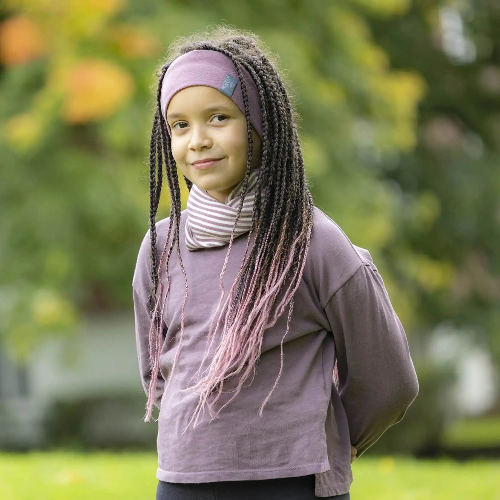 Weiches Stirnband aus doppellagiger Bio Wolle/Seide. Das leichte Stirnband reguliert die Wärme wunderbar. Es eignet sich auch für kühle Sommerabende und ebenso im Winter. Passt auch unter einen Helm. Sehr dehnbar und dadurch lange mitwachsend. Von Pick a Pooh.