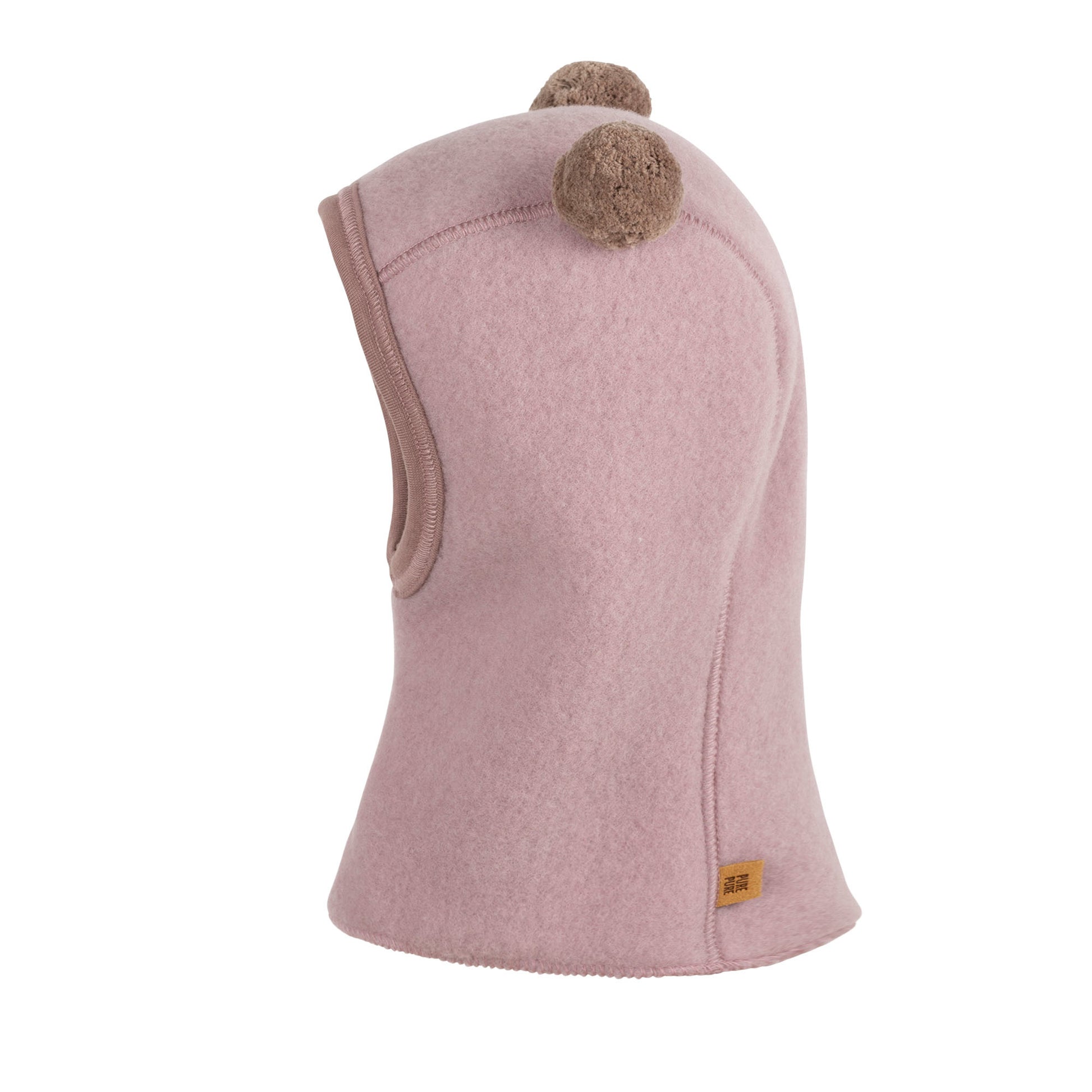 Kuschelig weiche Schlupfmütze aus 100% Bio-Merinowolle, welche zu Wollfleece verarbeitet ist. Die zwei kleinen Bommel sind farblich abgesetzt und verleihen der Mütze ein süsses Bärendesign. Umschliesst das Gesicht und schützt es vor Kälte und Wind.