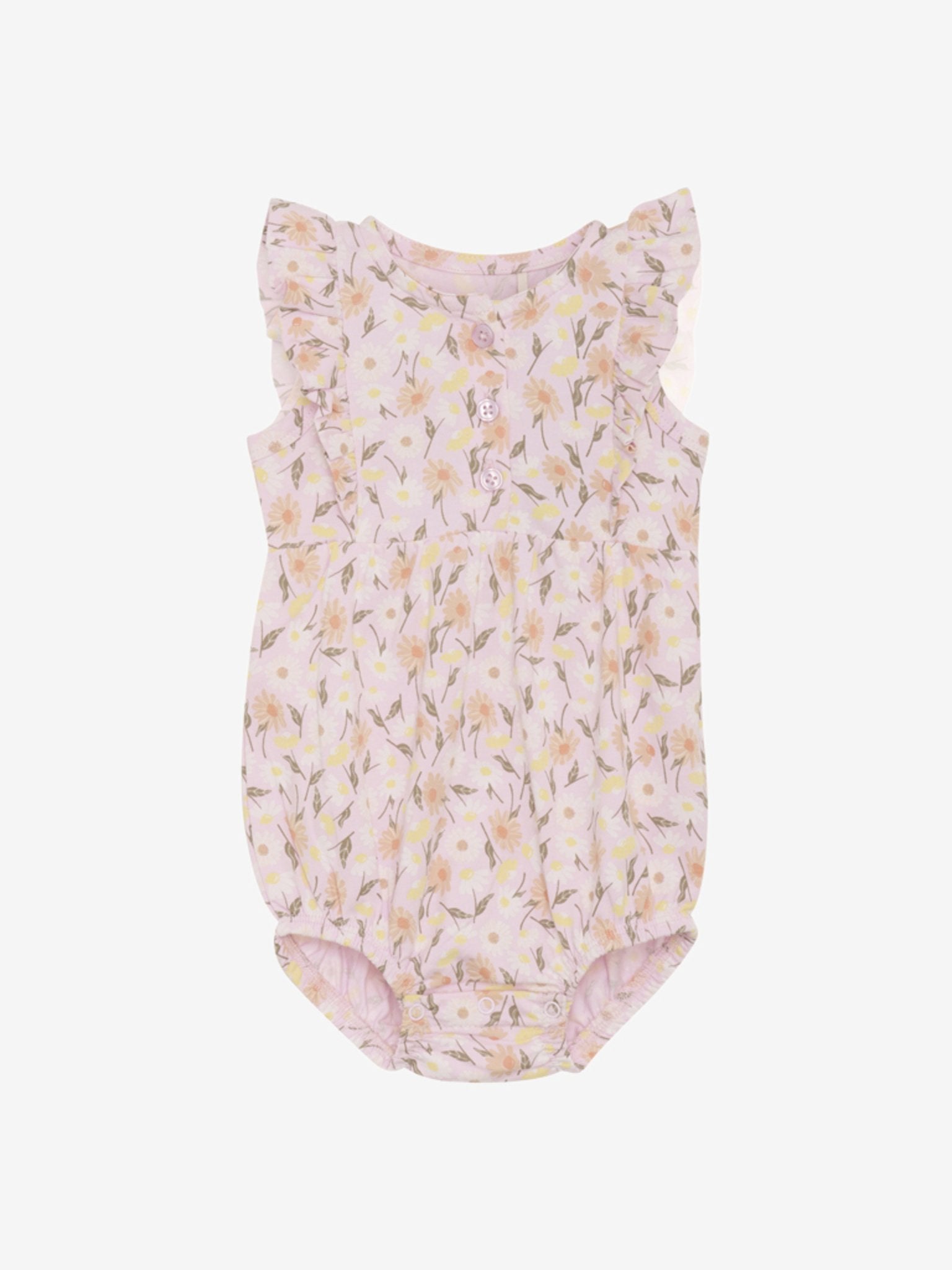 Herziger Kurzarmstrampler für die heissen Tage. Aus sehr weicher und bewegungsfreundlicher Biobaumwolle. Mit Rüschendetails und Blumen. Wird auf der Brust mit Knöpfen geschlossen, im Schritt befinden sich Druckknöpfe.Bei den Beinöffnungen ist ein Gummi eingezogen für eine bequeme Passform.
