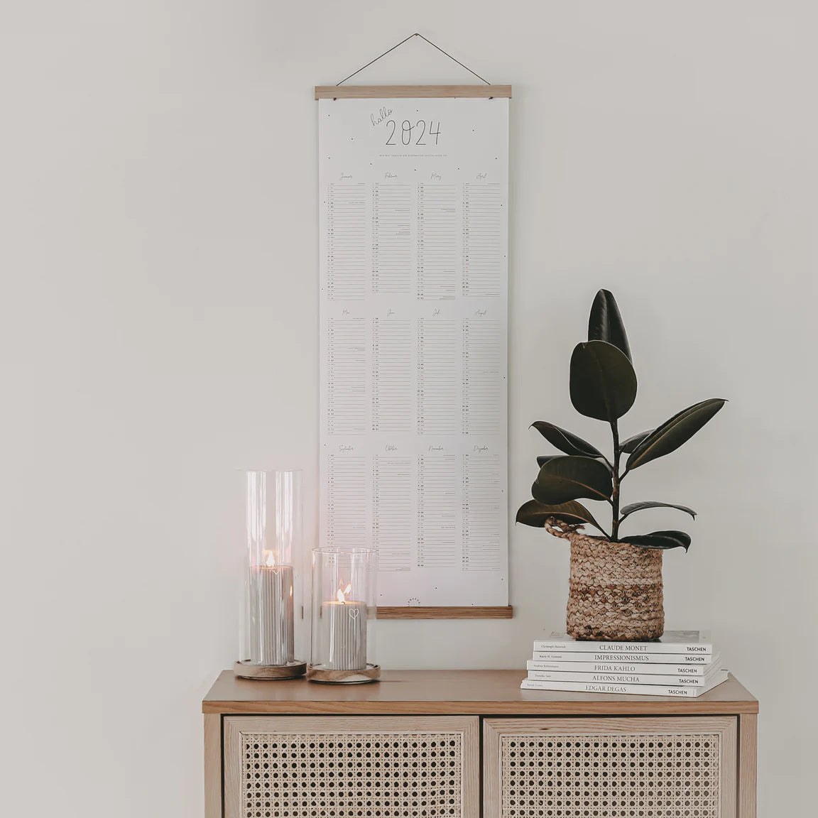 Minimalistisch gestalteter Kalender fürs Jahr 2024. Übersichtlich, zeigt er alle Termine des Jahres an und sieht dabei noch schön aus. Auf hochwertigem UV-festem Premium Papier ohne störende Spiegelungen. Von Eulenschnitt aus Hamburg.